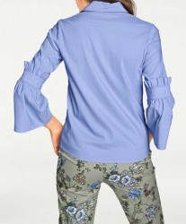 Trendová blúzka v modernom vzhľade a skvelej farbe. 3/4 rukávy s volánkami a gombíkom. Klasický golier, plné gombíky a mierne zaoblený lem.dĺžka cca 64 cmpohodlná, elastická kvalita 69% bavlna / 27% polyamid / 4% spandex