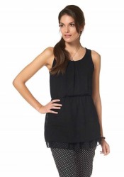 Šifónová blúzka v romantickom strihu, s okrúhlym výstrihom a slzičkou na zaviazanie na chrbáte. Blúzkový top je jemným kúskom, ktorý príjemne doplní štýlové džínsy, úzke nohavice, či kontrastnú koženú bundu. Materiál: ľahká transparentná kvalita: 100% polyester. Nepriehľadná podšívka zo 100% polyesteru. Dĺžka cca 80 cm.