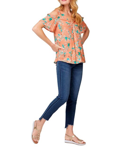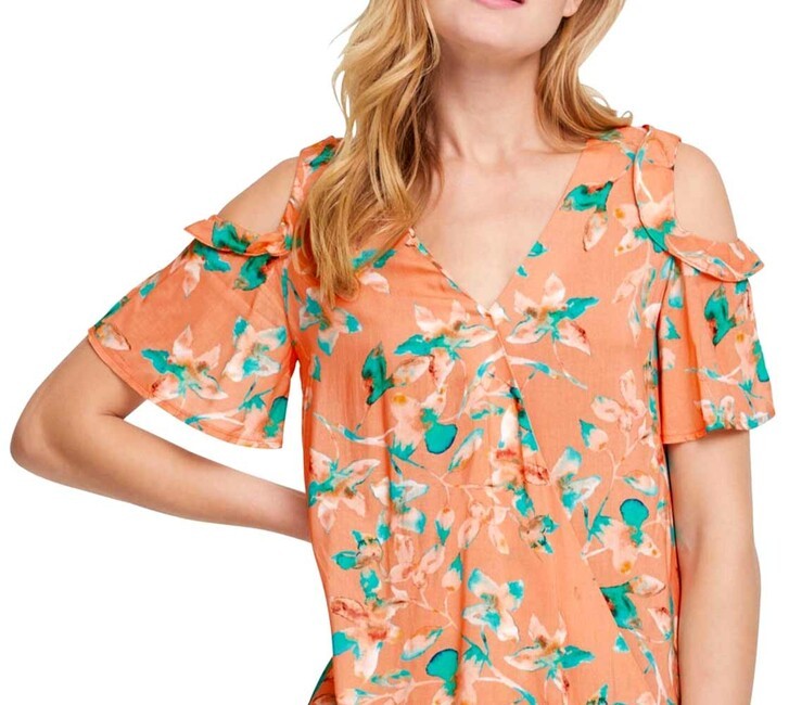 Jednoducho najlepšia. Výrazný styling ukazuje, čo je žiadané. Nádherne ženská blúzka v sviežej farebnej kombinácii a lichotivému zavinovaciemu vzhľadu s fixáciou v dekolte pre dobrý strih. Sexi výrezy na ramenách s volánikmi. Široké, krátke rukávy. Pohodlná, uvoľnená silueta. Dĺžka 60 cm. Mäkká, splývavá kvalita vyrobená zo 100% viskózy.