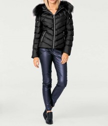 Kožená lakovaná bunda + 2 kožušiny, čierna