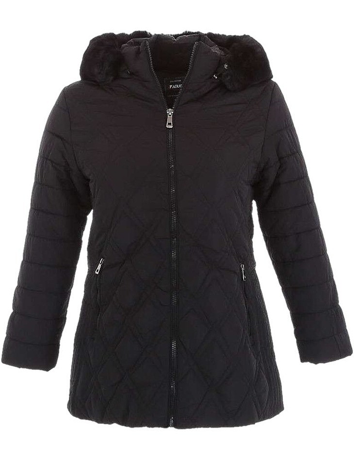 Dámska zimná bunda NATURE čiernej farby. bočné vrecká odnímateĺná kapucňa s kožušinou