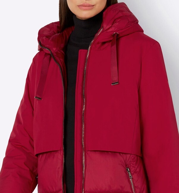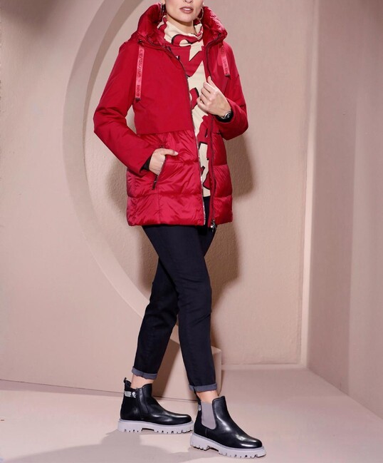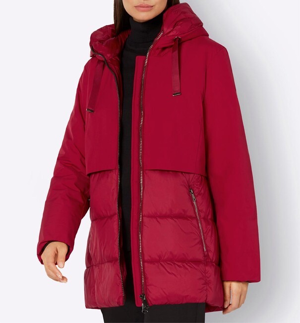 Trendy na ľadové dni: Táto teplá prešívaná bunda má útulnú, hrejivú podšívku a ponúka ochranu vďaka prešívanej kapucni. Spodná časť je krásne prešívaná vpredu aj vzadu, zatiaľ čo horná časť tela a dlhé rukávy sú hladké. Má lesklý obojsmerný zips, dve praktické vrecká na zips, vnútorné vrecko na zips a lem so sťahovacou šnúrkou. Tvarované švy zaisťujú priliehavé nosenie. Inovatívna výplň „Synthdown“ poskytuje teplo páperia, ale je 100 % bez páperia, vegánska a ľahko sa udržiava. Vrchný materiál: 100 % polyester. Výplň: 100 % polyester. Podšívka: 100 % polyamid. Dĺžka 78 cm. Výrobca: WEGA GmbH, Adresa: Fabrikstrasse 19-23, 83101 Rohrdorf/Thansau, DE, E-mail: info@wega-fashion.de