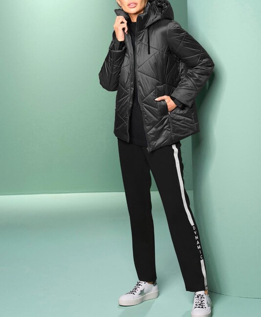Toto je móda – dokonalá kombinácia materiálov a dizajnu – tento model predstavuje všetky najnovšie módne trendy. Táto outdoorová bunda je perfektným spoločníkom na chladné dni! Moderné prešívanie a výrazný dúhový vzhľad. Má trendy stojatý golier, vrecká na zips a kapucňu so sťahovacou šnúrkou s ozdobným zamatovým lemom. Príjemne teplá podšívka. Rovný strih. Dĺžka 70 cm. Vrchný materiál: 100 % polyamid. Výplň a podšívka: 100 % polyester.Výrobca: AproductZ GmbH, Adresa: Werner-Otto-Straße 1-7, 22179 Hamburg, DE, Email: customer-service@aproductz.com.