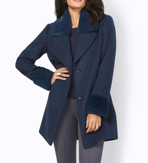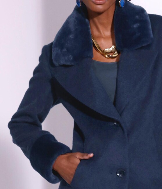 Zamiluejte si ju! Podiel vlny príjemne hreje, zatiaľ čo dlhší strih predlžuje postavu a je lichotivý. Medzi hlavné prvky patria detaily z umelej kožušiny v hornej časti klopového goliera a na manžetách dlhých rukávov. Má zapínanie na gombíky a vrecká vo švoch. Tvarovacie švy zaisťujú priliehavé nosenie. Dĺžka 82 cm. Super útulná, teplá a zároveň ľahká zmes materiálu 45 % polyakryl/30 % polyester/20 % vlna/5 % iné vlákna. 100 % polyester. Výrobca: Elite Moden GmbH & Co.KG; Adresa: Kasberg 80, 94110 Wegscheid, Nemecko; E-mail: product@elite-moden.de