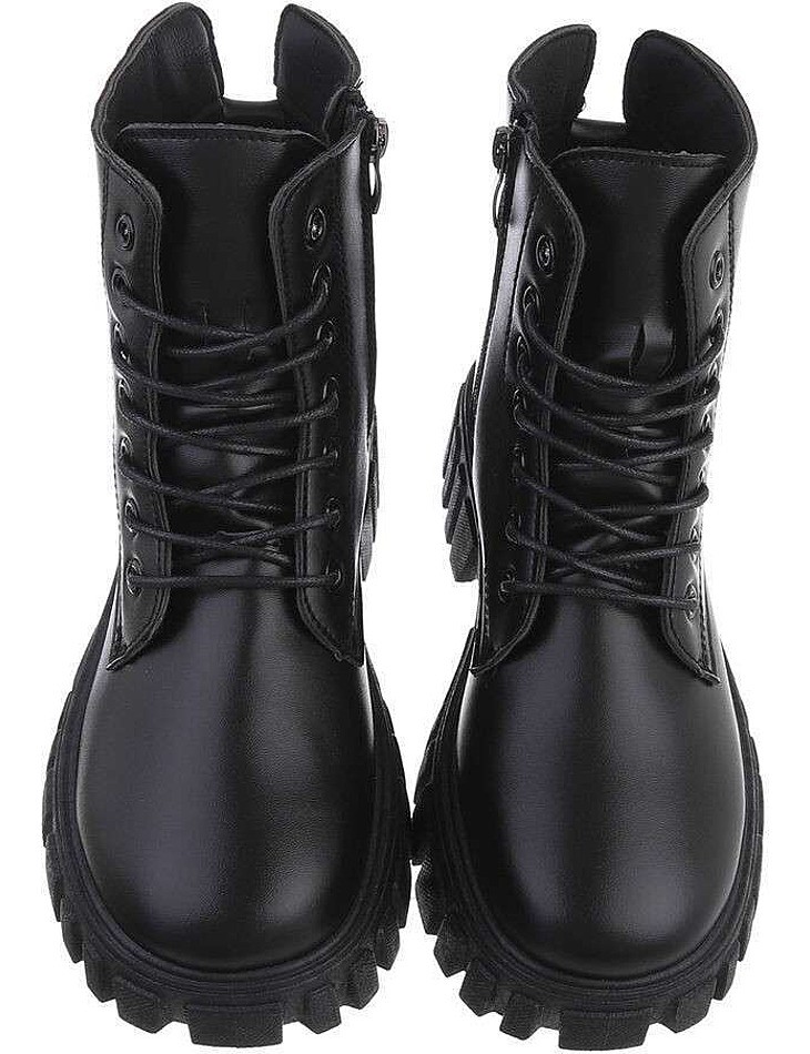 Dámske členkové topánky na platforme čiernej farby. zapínanie - zips ozdobné šnurovanie