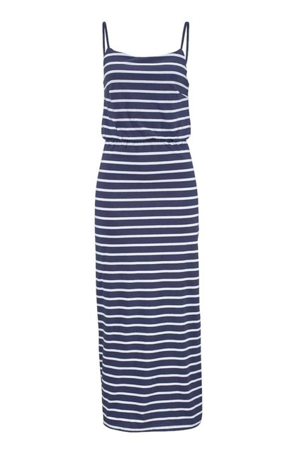 Letný look, ktorý inšpiruje. Dámske maxi šaty športového charakteru s najnovším pruhovaným vzorom. Dvojvrstvový top s nastaviteľnými špagetovými ramienkami a elastickým pásom. Mierne rozšírená sukňa priliehajúca k postave.Dĺžka: po členky 137 cm, merané pri veľkosti 38. Mäkký džersej vyrobený zo 100% bavlny.