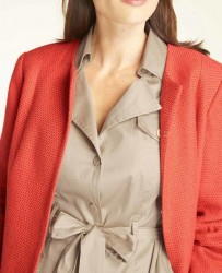 Nekomplikovaná, ležérna elegancia v módnom košeľovom štýle. Priliehavé postave so štýlovým golierom, nepretržitou gombíkovou légou a 3/4 rukávmi a pútkom na gombík na podkasanie. Viedenské švy garantujú ideálny tvar. Pútka na opasok a opasok. 2 falošné náprsné vrecká a 2 vrecká zapracované do švu. Ramenné / zadné sedlo. dĺžka 101 cm, pohodlná, jemná lesklá kvalita vyrobená zo 97% bavlny / 3% elastanu, podšívka zo 100% bavlny (Bez šálu)