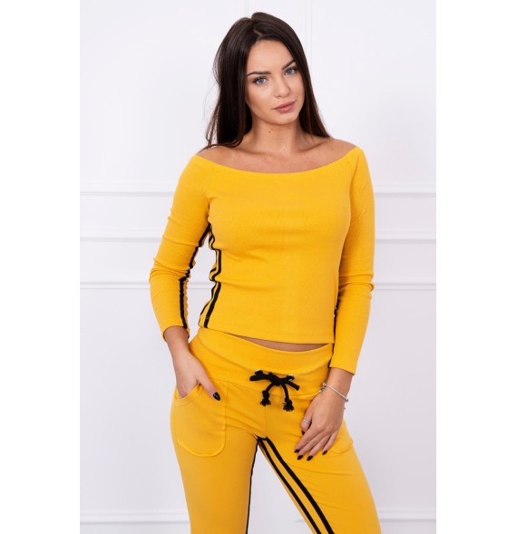 Predstavujeme vám sadu mikín a nohavíc. Súprava obsahuje nohavice s vyšším pásom. Rebrovaná blúzka. Na nohaviciach a na blúzke je všitý dvojitý prúžok. Nohavice majú vrecká. Súprava je vyrobená z vysoko kvalitného materiálu. Veľkosť je univerzálna a bude vhodná pre dámy, ktoré nosia veľkosti S, M alebo L.