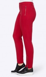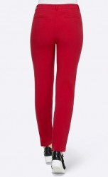 Tento model ukazuje všetky módne trendy akcenty. Ušľachtilé strečové nohavice v horúcej farbe. Úzky tvar s bočnými vreckami na zips. Rozparky na zips na koncoch nohavíc. Zadná časť s falošnými vystuženými vreckami. Pripevnený pás s pútkami na opasok. Normálny výška sedu. Slim fit. Šírka spodného lemu 30 cm. Vnútorná dĺžka nohavíc 74 cm. Pevná, rozmerovo stabilná kvalita vyrobená z 94% polyamidu8 6% elastanu.