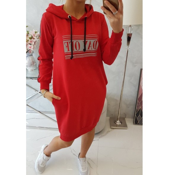 Predstavujeme vám módne šaty. Šaty majú reflexnú potlač a reflexné pruhy na rukávoch. Šaty s vreckami a kapucňou. Perfektná ponuka pre každú dámu. Šaty sú vyrobené z vysoko kvalitného materiálu. Veľkosť je univerzálna a bude vhodná pre dámy s oblečením veľkostí S, M alebo L.