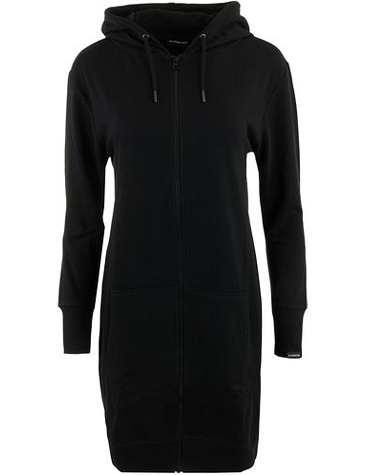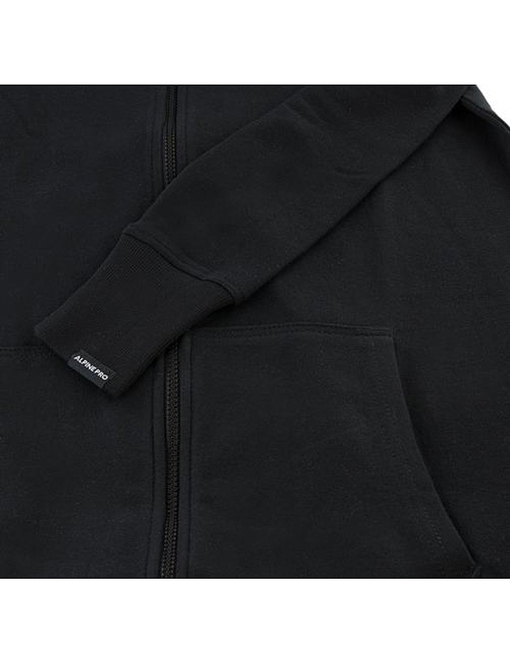 Dlhá dámska mikina značky ALPINE PRO čiernej farby. s kapucňou v dĺžke ku kolenám v polopriliehavom strihu