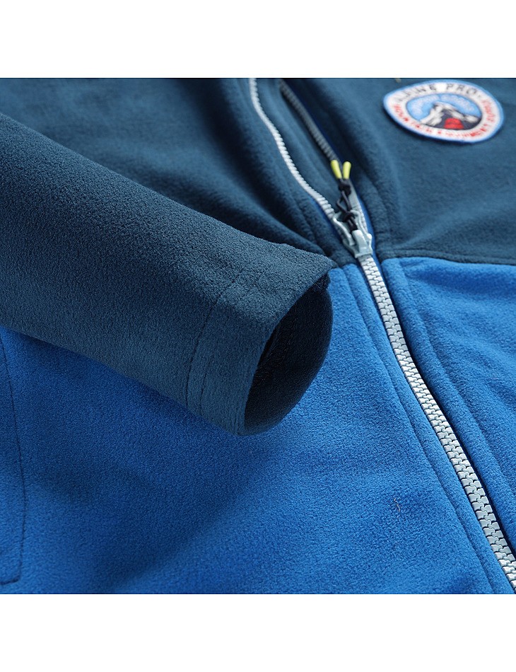 Detská fleecová mikina modrej farby. celo prepínacie bočné vrecká logo značky