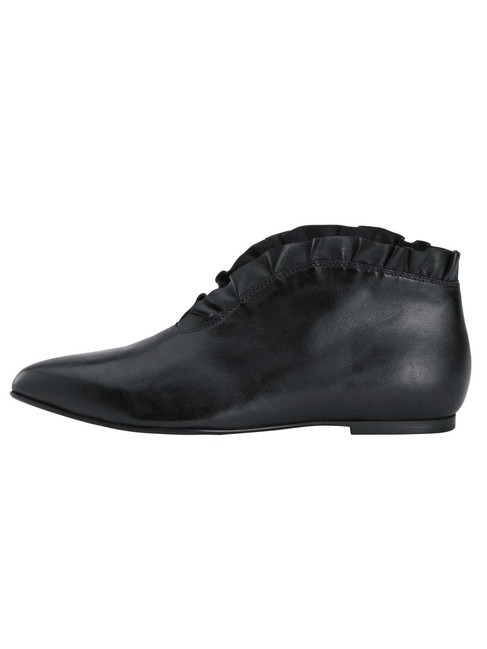 Ušľachtilá členková topánka Heine vyrobená z mäkkej nappa kože. Efektívne spracovanie v rozhodne ženskom dizajne s hravým volánovým lemom a módnym tvarom špičky. Vysoko kvalitný kožený interiér. Nízka podrážka poskytuje optimálne pohodlie. Výška podrážky cca 0,7 cm. Syntetická podrážka.