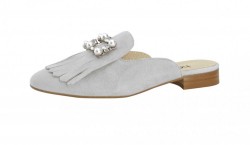 Semišové sabot šľapky s kamienkami Heine, svetlo sivá