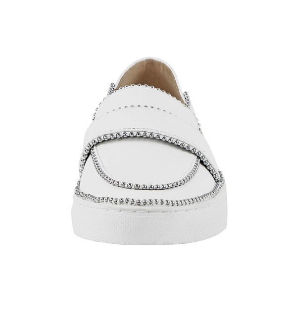 Špičkový módny génius! Štýlové slipper topánky vyrobené z jemnej hladkej hovädzej kože s jemným leskom. Špeciálny vzhľad vďaka sofistikovanému strihu a lesklým strieborným guľôčkovým nitom. Plochý tvar ponúka optimálny komfort. Zaoblený tvar dopĺňa trendy vzhľad. Kožená podšívka a polstrovaná kožená stielka. Syntetická podošva, výška 2 cm.