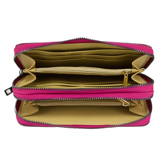 Kožená peňaženka s dvojitým zapínaním na zips. Obsahuje mincovníky na zips, priehradky na bankovky a kreditné karty. 100% MADE IN ITALY.