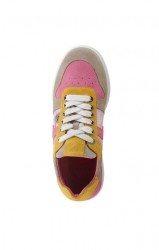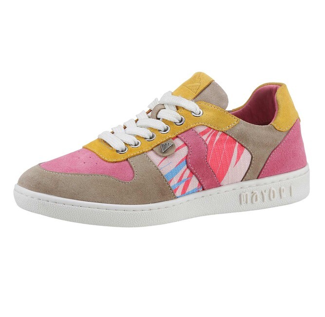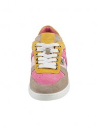 Špičková farebná kombinácia v patchworkovom dizajne a ležérne interpretovaný príjemný štýl ukazujú trend voľného času v jeho najhorúcejšej stránke. Elegantné a farebné sneaker tenisky na každodenné nosenie vyrobené z kvalitnej kože a textilu s odnímateľnou stielkou. Kožená podšívka a stielka. Šnurovanie. Polstrovaný lem. Syntetická podrážka.