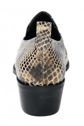 Tu slúžia ako šablóna kovbojské topánky a sú moderne interpretované. Skutočne pohľadné sú tieto poltopánky so vorom hadej kože a zlatým leskom. Ručne vyrobené v Španielsku v špicatej forme a kovbojskou pätou. Elastické vložky pre pohodlný nazúvanie. Zvršok je vyrobený z mäkkej nappa kože. Potiahnuté koženou stielkou. Flexibilná podrážka. výška opätku 4,5 cm