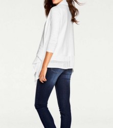 Tento atraktívny twinset je skutočným umelckým kúskom! Šarmantný LOOK vykúzlite jednoducho s nohavicami, džínsami alebo sukňou.Ležérny kardigán bez zapínania v asymetrickom tvare lemovaný krásnym ažúrovým vzorom. Dĺžka cca 60 cm / 80 cm.Vrchný diel priliehavý postave, s okrúhlym výstrihom, široké popruhy. Dĺžka cca 60 cm.materiál: príjemný, jemný úplet vyrobený z: 50% bavlny / 50% polyakrylátu.