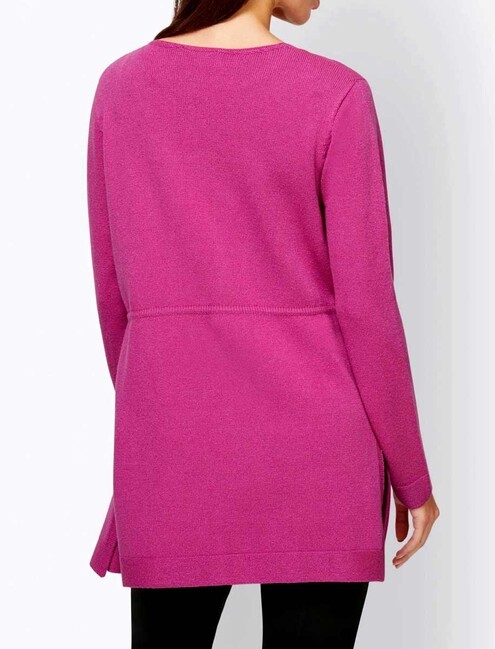 Ružová je IN! Kardigán rovného strihu od Ricka Cardonu v trendy dlhom strihu s tvarujúcou šnúrkou so zaväzovaním v páse. Lemovaný jemným horizontálnym vzorom rebrovaného úpletu šikovne podčiarkujú skvelý vzhľad. Priliehavý postave s dlhými rukávmi a ležérnymi bočnými rozparkami.Dĺžka 74 cm (veľkosť 38). Príjemný, mäkký úplet vyrobený zo 63% polyakrylu/27% bavlny (Bavlna vyrobená v Afrike)/10% polyamidu.P
