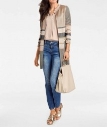 Najlepšie oblečená žena! Tento jemný kardigán pre ženy je módnym hitom. Zlatá a strieborná trblietavá priadza Lurex a štýlový pruhovaný vzhľad zaisťujú obzvlášť efektný vzhľad. Volány na pripevnených predných vreckách dávajú modelu hravý nádych. Priliehavý postave s okrúhlym výstrihom so zapínaním na suchý zips a dlhými rukávmi.dĺžka 84 cm, ušľachtilý trblietavý jemný úplet vyrobený z 84% viskózy / 8% polyamidu / 5% polyesteru / 3% elastanuBest-dressed-Woman! Diese feminine Designer-Feinstrickjacke ist ein modisches Highlight. Gold- und silberschimmerndes Lurexgarn sowie die stilvolle Streifen-Optik sorgen für einen besonders effektvollen Look. Die Rüschen an den aufgesetzten Fronttaschen verleihen dem Modell eine verspielte Note. Figurbetonte Silhouette mit Rundhalsausschnitt, Haken-Ösen-Verschluss und langen Ärmeln. Länge ca. 84 cm. Edel glänzende Feinstrick-Qualität aus 84% Viskose/ 8% Polyamid/ 5% Polyester/ 3% Elasthan.