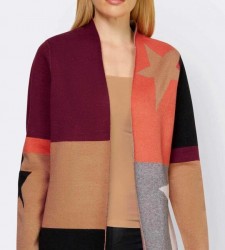 V zásade túto sezónu - bez ohľadu na farebnú kombináciu, s pleteninou a mixom vzorov si vždy vyberiete správne! Elegantný dlhý kardigan s extravagantným žakárovým dizajnom s hviezdičkami! Moderný, zapínaný dlhý kardigan s dlhými rukávmi. V hrejivej a mäkkej kvalite z 52 % viskózy / 26 % polyesteru / 22 % polyamidu. Rovná forma. Dĺžka cca 100 cm.