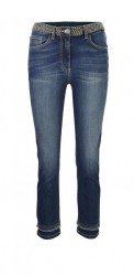 Tento štýl má všetko! Módne džínsy od Linea Tesini sú super trendy s autentickým vyšúchaným vzhľadom a trendy 7/8 dĺžkou. Trendový 5-vreckový štýl s normálnou výškou sedu a našitým pútkom na opasok s lesklými zlatými nitmi, ktoré upútajú pozornosť. Zapínanie na gombík a skrytý zips. Rovno strihané nohavice s ozdobným vrstveným lemom s prepracovanými strapcovými detailmi. S elastanom pre perfektný strih. Vnútorná dĺžka nohavíc 63 cm (veľkosť 38). 98% bavlna (bavlna vyrobená v Afrike)/2% elastan.