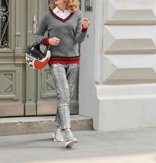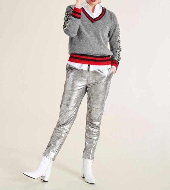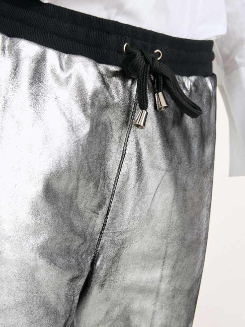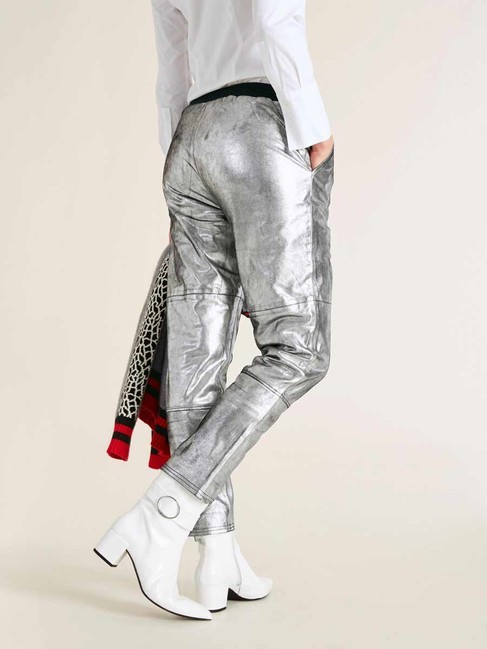 S absolútnym potenciálom zažiariť. Nohavice vyrobené z kvalitného, silného, fantasticky mäkkého semišu s ušľachtilým, lesklým kovovým poťahom a svetlými efektmi. Kontrastné rebrované manžety so sťahovacou šnúrkou, deliacimi švami a 2 bočnými vreckami. Comfort Fit. vnútorná dĺžka cca 67 cm podšívka vyrobená z 95% polyesteru / 5% spandexu, rebrované manžety vyrobené z 96% viskózy / 4% spandexu