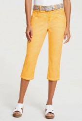 Módny must have! 3/4 rifle od Linea Tesini v trendovom slim strihu a modernom ošúchanom vzhľade s prepracovaným prešívaním v slnečnej žltej farbe. Normálna výška sedu s našitým pásom s pútkom na opasok, gombíkom a skrytým zipsom. Bočné vrecká vpredu a vzadu. Dômyselné šitie zaisťuje skvelý push-up efekt na zadku. Vnútorný šev 48 cm. Elastická džínsovina vyrobená z 97% bavlny (Bavlna vyrobená v Afrike)/3% polyesteru. Zobrazený opasok nie je súčasťou.
