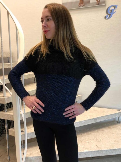 Štýlový doplnok k mnohým outfitom! Mäkký úplet s elegantným farebným mixom. Trendový oversized tvar. Trblietavá, pletená lurexová priadza kráľovskej modrej farby vytvára sofistikované odlesky. Manžety a lem z rebrovaného úpletu. Ležérny rolák. Dĺžka 64 cm. Mäkký, nadýchaný robustný úplet vyrobený z 30 % polyakrylu, 27 % polyamidu, 22 % polyesteru, 18 % mohéru, 3 % vlny.
