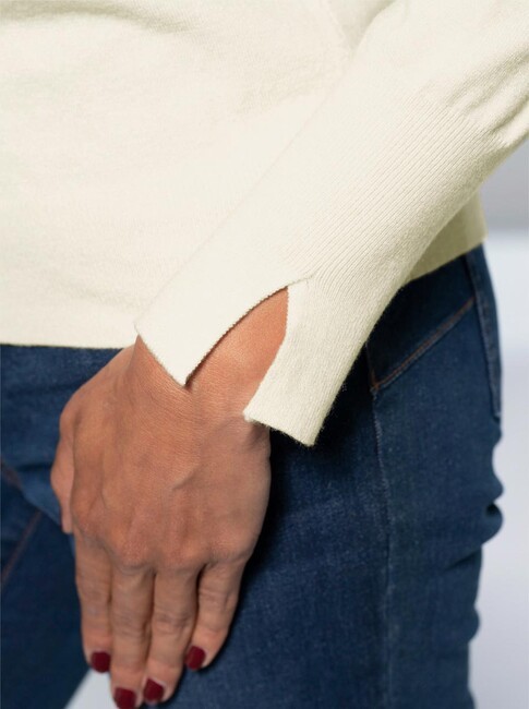 Zaručene kombinuje pohodlie a dizajn. Elegantný rolákový pulóver vyrobený z jemného úpletu so štýlovými detailmi. So stojačikom a rebrovanými manžetami. Dlhé rukávy s vysokými rebrovanými manžetami a malým rozparkom. Dĺžka 60 cm. Mäkký jemný úplet z 50% viskózy/28% polyesteru/22% polyamidu.
