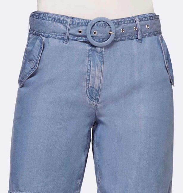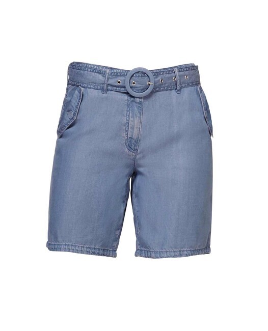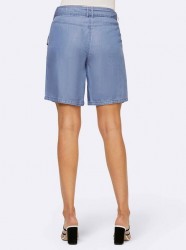 Letné šortky V lyocellovej kvalite šetrnej k pokožke a v džínsovom vzhľade. S opaskom, bočnými vreckami a tvarovaným pásom s háčikom a zipsom. Pohodlný strih. Normáln a výška sedu. Vnútorná dĺžka nohavíc 17 cm. Mäkká kvalita vyrobená zo 100% lyocellu.