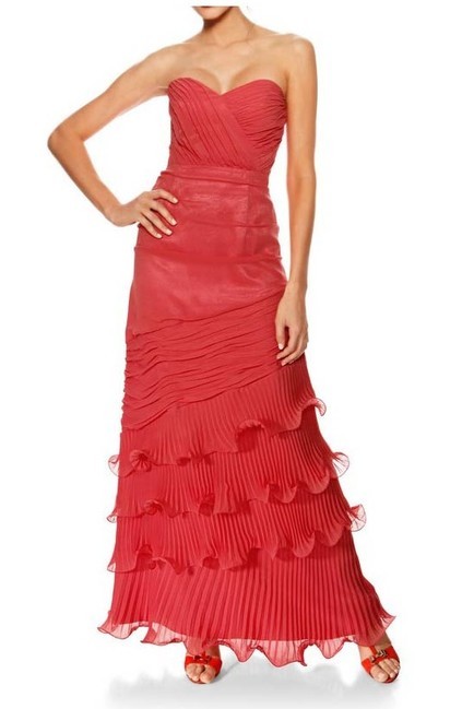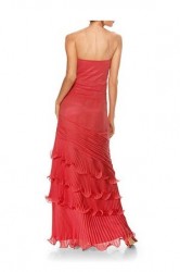 Dámske spoločenské šaty v extravagantnej koralovej farbe, v jednoduchej línii s ozdobnou plisovanou sukňou. Šaty majú v sebe kus elegancie a štýlu, ktorý vás spraví neodolateľnou na všetkých spoločenských podujatiach. Materiál: Ľahký šifón - 100% polyester. Tone v tóne saténová podšívka 100% polyester.