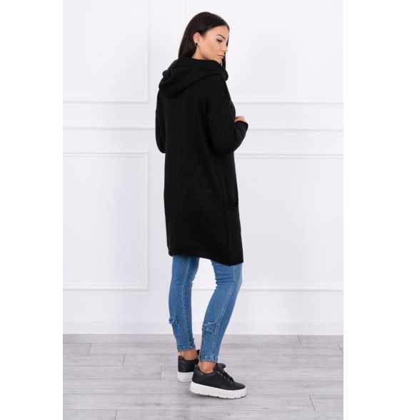 Sveter má vrecká a široký golier, ktorý môžete nosiť ako kapucňu.