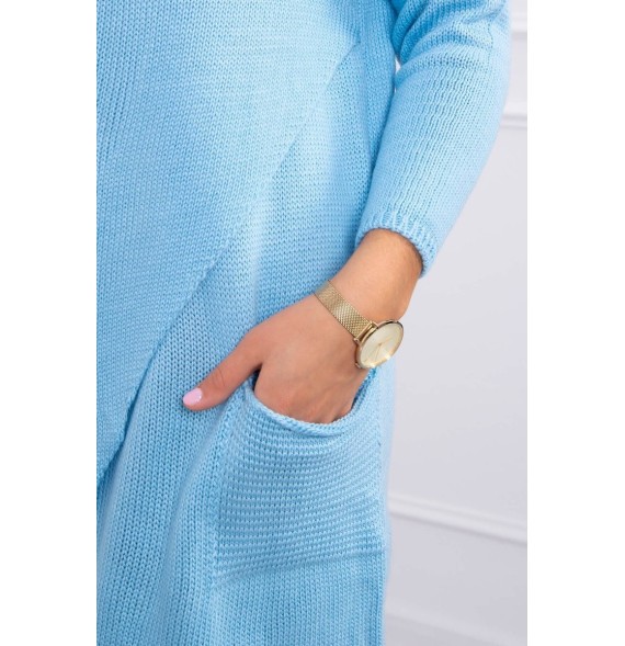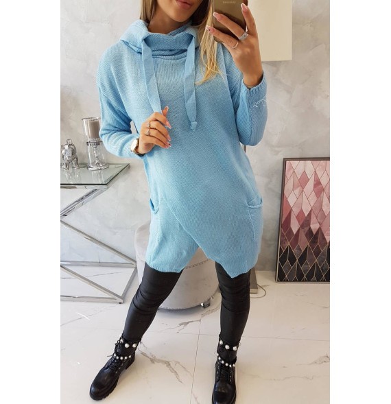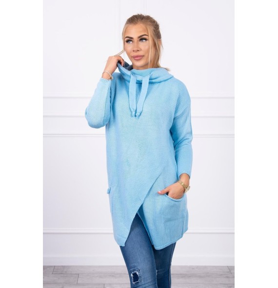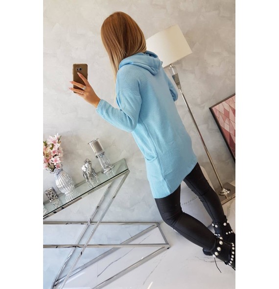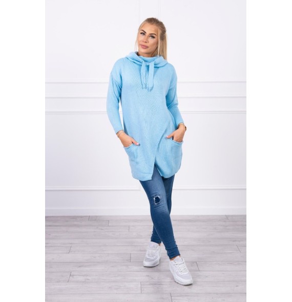 Sveter má vrecká a široký golier, ktorý môžete nosiť ako kapucňu.