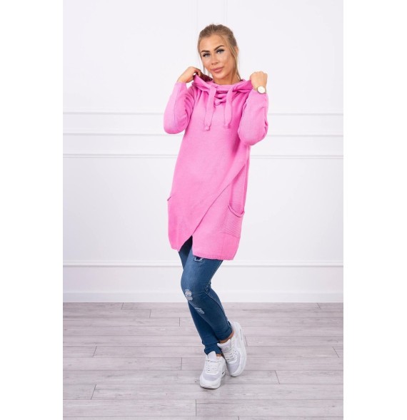 Sveter má vrecká a široký golier, ktorý môžete nosiť ako kapucňu.