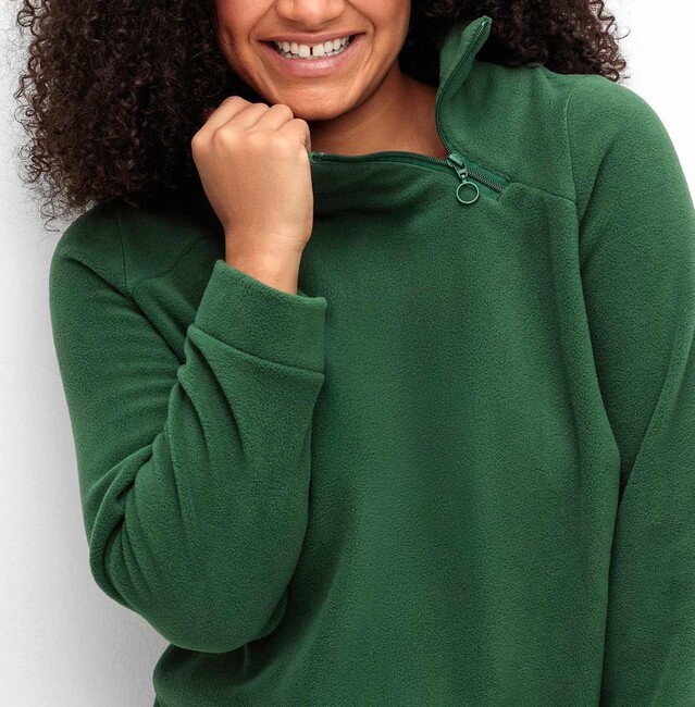 Pohodlná mikina z príjemného flísu. Stojatý golier s diagonálnym zipsom vytvára športový vzhľad, ktorý je obzvlášť pútavý. Vrch má široké manžety na dlhých rukávoch a rovný lem, čo dotvára pohodlný vzhľad. Má priliehavý strih. Pohodlná, mäkká flísová tkanina zo 100 % polyesteru sa veľmi ľahko udržiava. Dĺžka 70 cm.Výrobca: AproductZ GmbH, Adresa: Werner-Otto-Straße 1-7, 22179 Hamburg, DE, Email: customer-service@aproductz.com