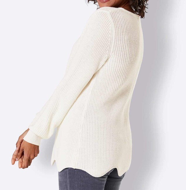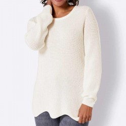 Ležérnosť je môj luxus! Tento úžasne mäkký pulóver z merino vlny rozmaznáva vašu pokožku hebkým pocitom. Výsledkom vysokokvalitného jednoduchého vzoru je moderný, hrubý a úhľadne rovnomerný vzor stehu. Sladký detail: Lem je zvlnený a hravo padá okolo tela, aby ho skryl. Dĺžka 66 cm. Mäkký hrejivý úplet zo 100% panenskej vlny (Merino).