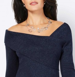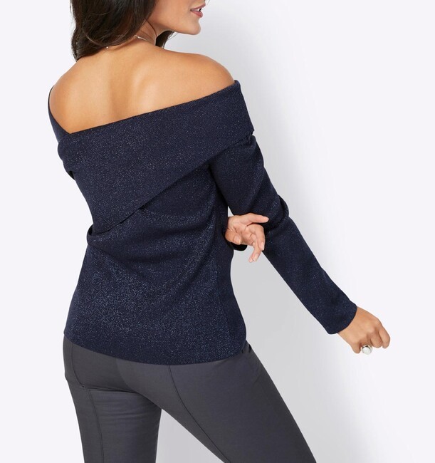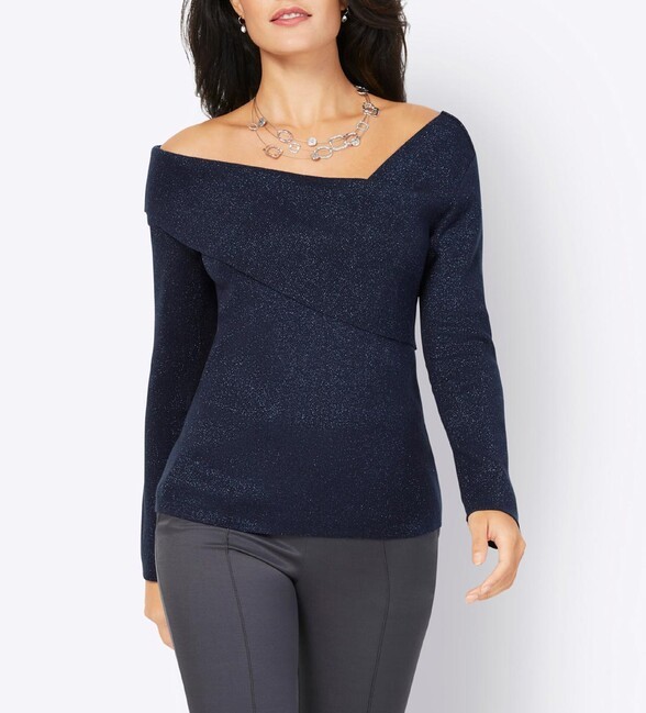 S týmto pulóvrom určite pritiahnete obdivné pohľady! Dvojvrstvový predný panel vytvára výrazný, mierne asymetrický vzhľad. Trblietavé, lesklé priadze sú obzvlášť krásne. Má lichotivý výstrih do V a dlhé rukávy. Dĺžka 62 cm. Mäkký úplet vyrobený zo 61 % viskózy / 38 % polyamidu / 1 % metalizovaných vlákien. Výrobca: AproductZ GmbH, Adresa: Werner-Otto-Straße 1-7, 22179 Hamburg, DE, Email: customer-service@aproductz.com