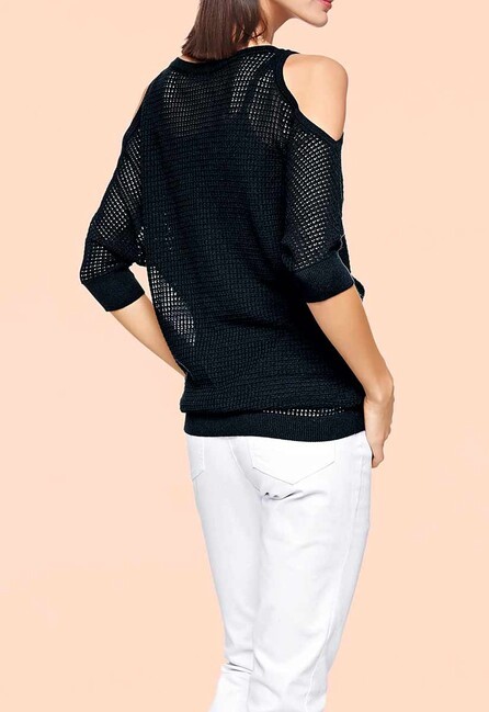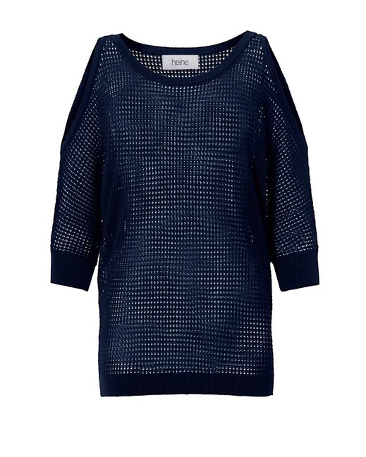 Extra horúci flirt! Módny priehľadný pulóver od Heine s prepracovaným siťovaným vzorom a rafinovanými detailmi. V ležérnom dlhom strihu lichotiaceho postave so sexi výstrihmi Cut-Outs na pleciach a dlhými netopierími rukávmi s rebrovanými manžetami. Rebrovaný spodný lem. Dĺžka 69 cm (veľkosť 40/42). Pohodlný úplet vyrobený z 50% bavlny (Bavlna vyrobená v Afrike)/50% polyakrylu.