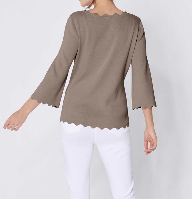 Štýl a materiál robí tento sveter skutočne neodolateľným. Úžasne jemná kvalita, priateľská k pokožke s rafinovaným jemným trblietavým hodvábom. Vlnený lem a mierne rozšírené 3/4 rukávy. dĺžka cca 64 cmkvalitný mäkký úplet vyrobený zo 60% bavlny (Pima) / 40% hodvábu