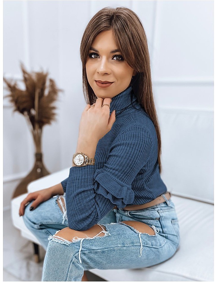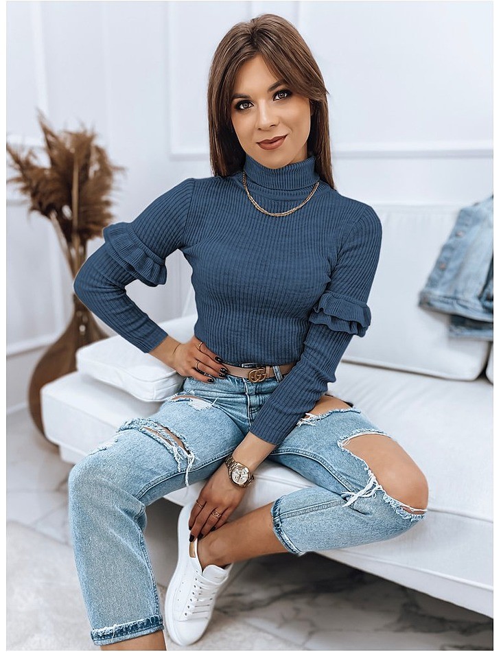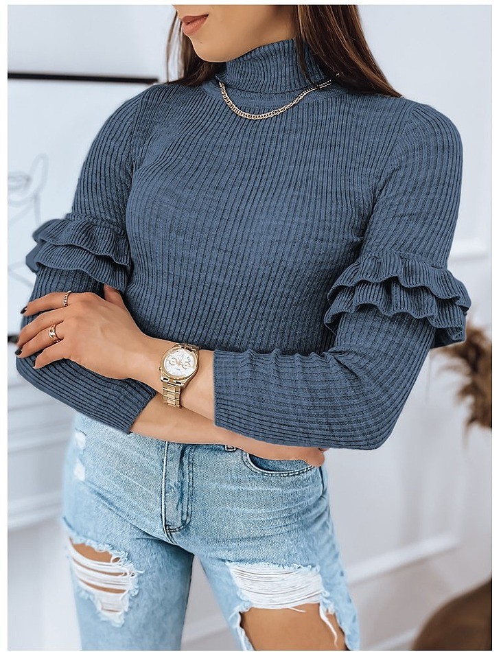 Dámsky pulóver. Rolák Ozdobný volán Rebrovaná látka
