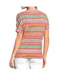 Dámske tričko v neformálnom strihu a skvelých letných farbách. Tričko skvelo skombinujete k športovému i elegantnému outfitu. Moderne pri ňom vyniknú džínsy, nohavice i šortky. Materiál: jemný úplet 86% bavlna,14% metalizované vlákna. Dĺžka cca 64 cm.