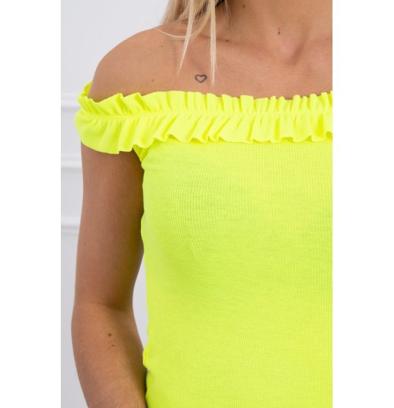 Tričko s holými ramenami. Elastický šitý výstrih. Tričko je vyrobené z vysoko kvalitného rebrovaného materiálu. Veľkosť je univerzálna a bude vhodná pre dámy s oblečením veľkostí S, M alebo L.
