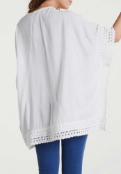 Má to, čo je potrebné, aby sa stal vaším novým obľúbeným kúskom! Ozdobná háčkovaná čipka a ležérne koketná tunika zaisťujú dievčenský šmrnc a živý štýl, vďaka ktorému je táto blúzka taká neodolateľná. Čiastočne mierne priehľadné. Voľný, postavu obopínajúci tvar s bohatými háčkovanými čipkami na okrajoch. Veľkorysé netopierie rukávy. Mäkká, splývavá tkanina vyrobená zo 100% viskózy. 100% bavlnená čipka. Dĺžka 68 cm.