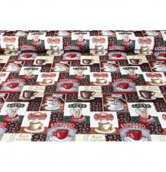 Tento gobelínový behúň na stôl je ideálny pre milovníkov kávy. S motívmi obľúbených kávových nápojov ako espresso, cappuccino a latte prináša do vašej kuchyne alebo jedálne šarm kaviarenskej atmosféry. Detaily šálok, zŕn kávy a názvov vytvárajú útulný a štýlový doplnok, ktorý oživí váš stôl. Skvelá voľba pre kávové chvíle s rodinou a priateľmi.