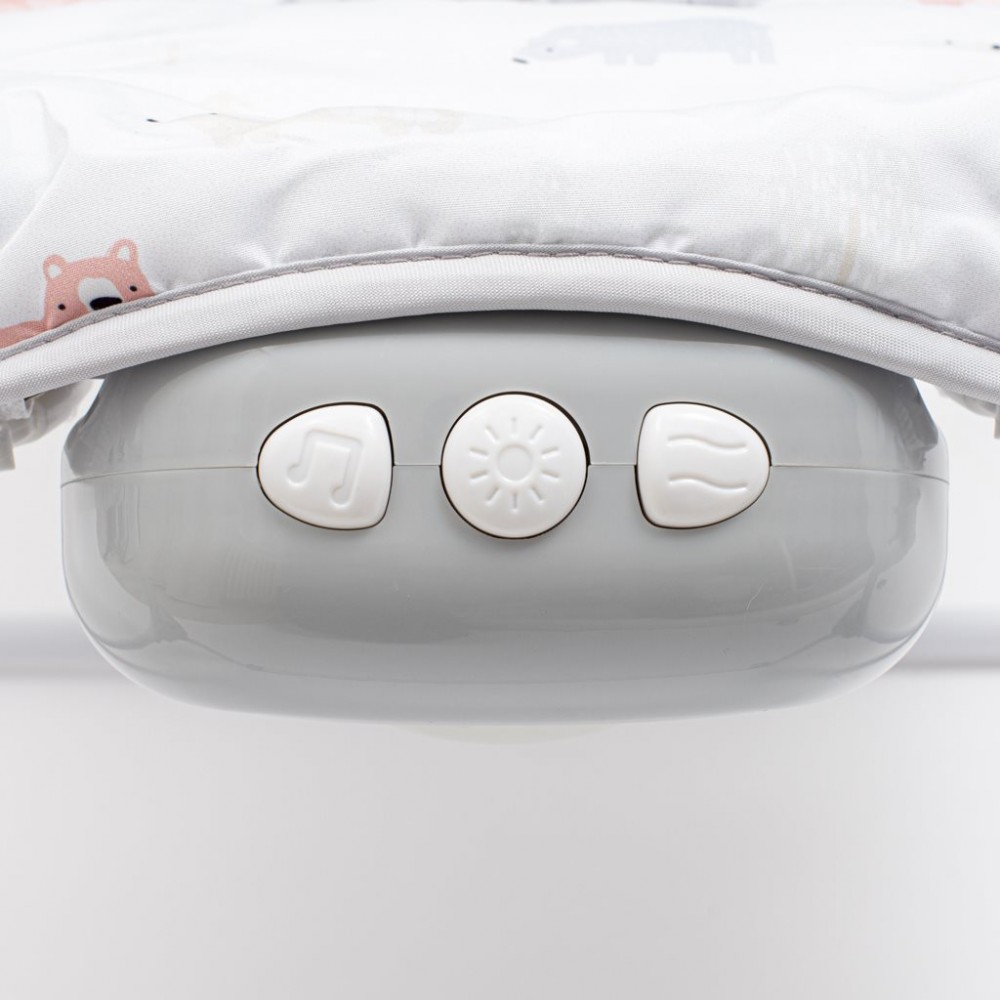 Môžete v ňom bábätko uložiť ku krátkemu spánku, stačí iba operadlo sklopiť, zapnúť bezpečnostné pásy, zapnúť funkciu jemných vibrácií a namontovať držiak s hračkami. Staršie deti v ňom môžu sedieť, hojdať sa, prezerať si knižky alebo si kresliť.