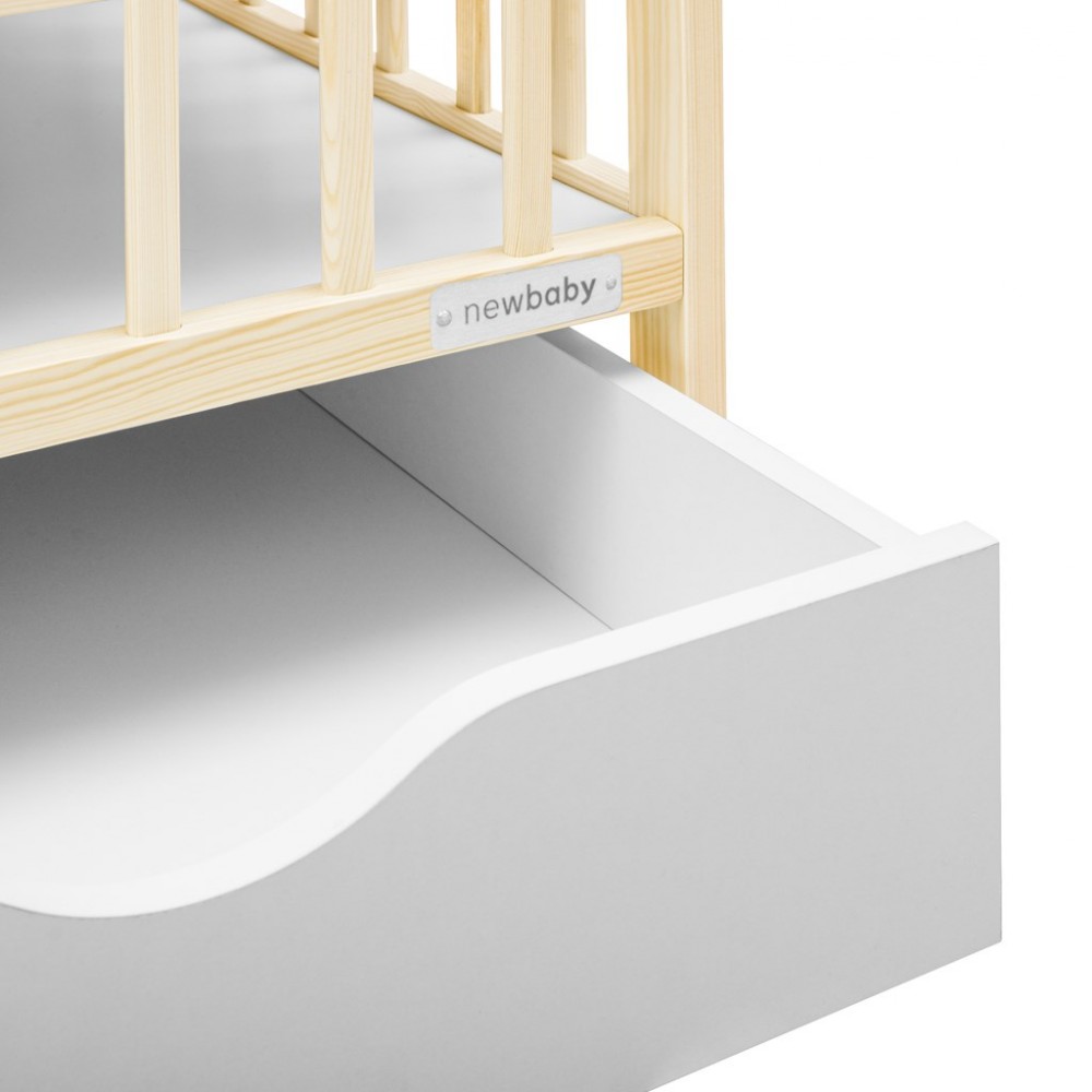 Je celá vyrobená z borovicového dreva. Všetky materiály a suroviny použité pri výrobe sú schválené a certifikované, preto nábytok New Baby je úplne bezpečný a odolný.