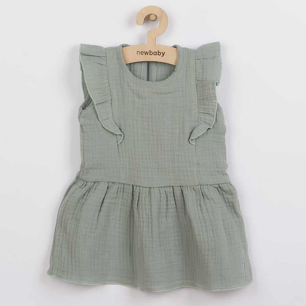 Módne mušelínové dojčenské šatôčky New Baby Summer Nature Collection. Šatôčky sú bez rukávov s volánikmi a sú ušité v tvare písmena A. Vrchná časť je zdobená roztomilým volánikom a spodná časť má krásne nariasenú sukienku. Zapínanie na cvoček na zadnej strane. Sú ľahučké a veľmi príjemné pri nosení. Zloženie: 100% bavlna. Mušelín je jedna z najčistejších, najjednoduchších a najjemnejších tkanín na svete. Jemne tkaný priedušný materiál je tak dokonalý, že si ho zamilujú deti po celom svete. Ľahká štruktúra umožňuje mušelínu "dýchať" a zaisťuje dostatočnú cirkuláciu vzduchu, čím znižuje riziko prehriatia. Mušelín je veľmi odolný a to tak, že bez problémov zvláda opakované pranie a postupom času je ľahší a jemnejší.
