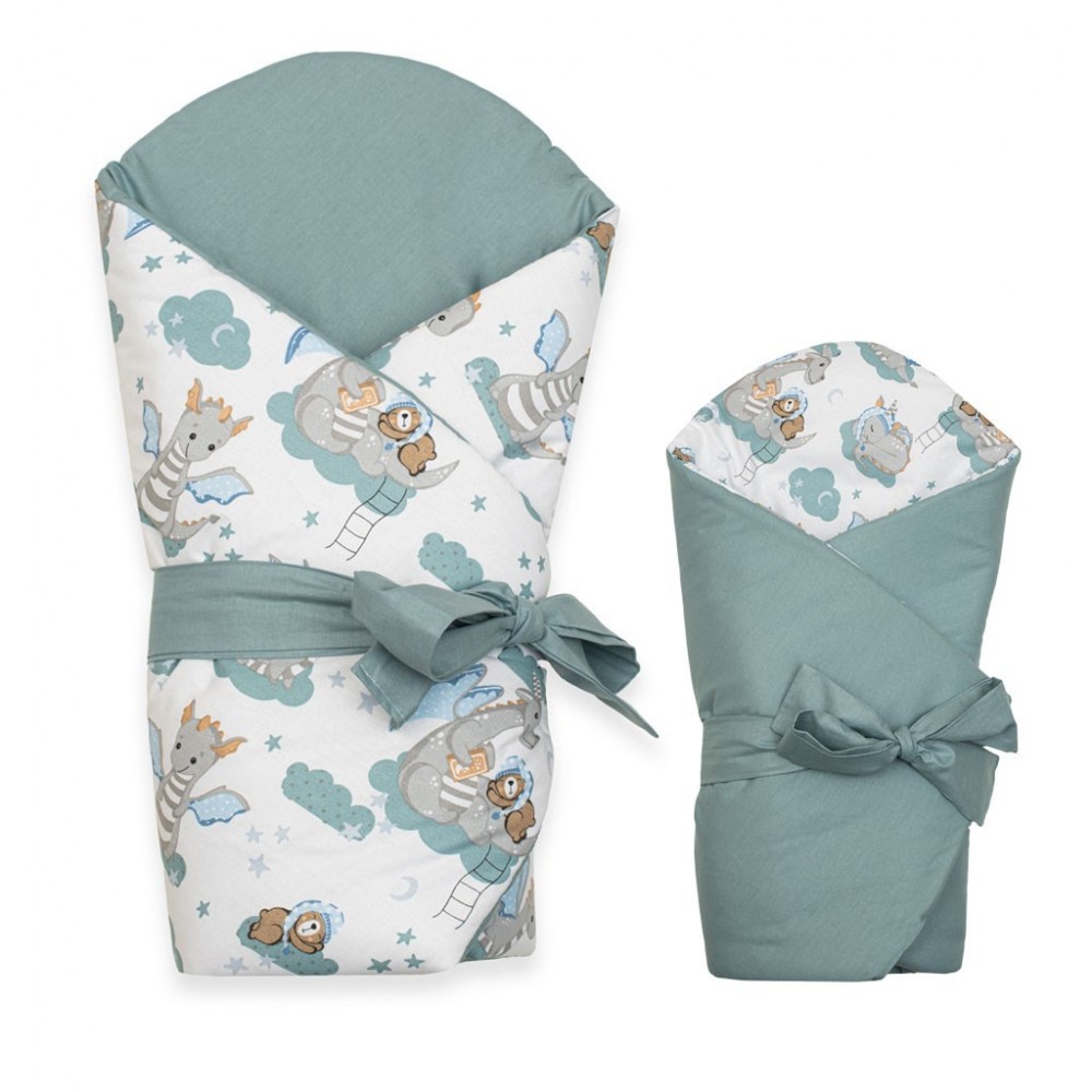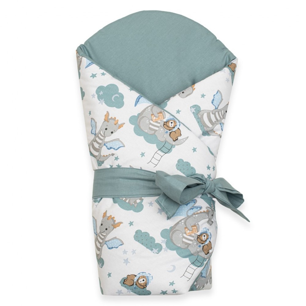 Nádherná detská obojstranná zavinovačka New Baby Dráčik pre bábätká. Zavinovačka je vyrobená z kvalitného a jemného materiálu, ktorý zaručí vášmu bábätku príjemné teplo. Výplň je až 3 cm čo znamená, že zavinovačka je vhodná aj na chladnejšie dni a je dostatočne pevná. Krásny detský motív, polahodí detským očičkám. Zapínanie na suchý zips aj stuhu na zaviazanie na mašľu.